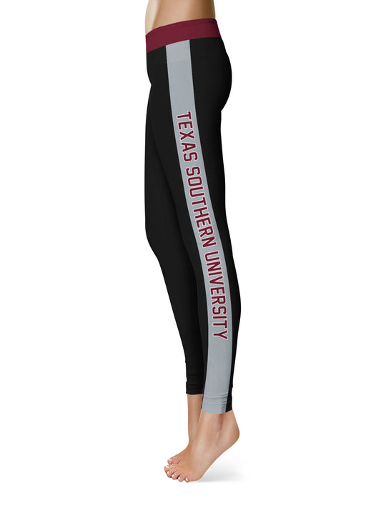 Texas Southern Tigers Game Day Maroon Stripes Black Yoga Leggings for Women by Vive La Fete