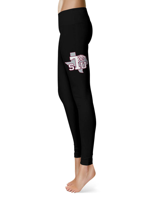 Texas Southern Tigers Game Day Large Logo on Thigh Black Yoga Leggings for Women by Vive La Fete