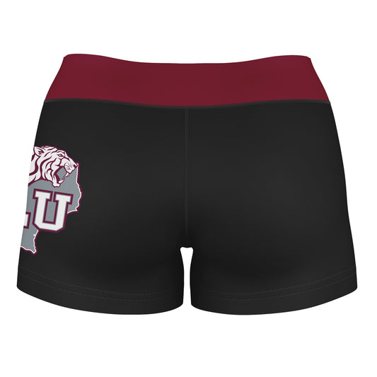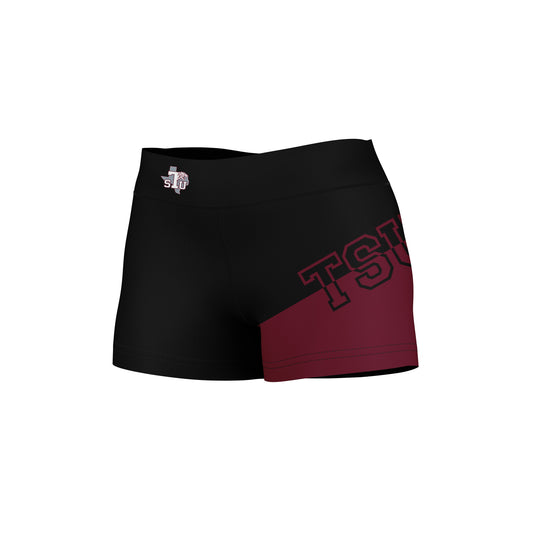Texas Southern Tigers Logo on Thigh & Waistband Black & Maroon Womens Yoga Booty Workout Shorts by Vive La Fete