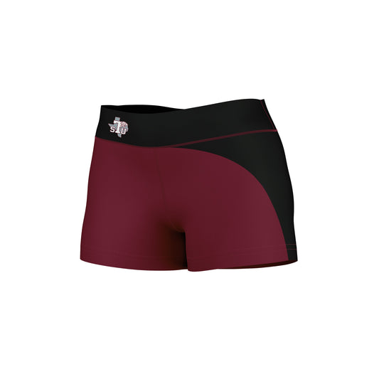 Texas Southern University Tigers Game Day Collegiate Leg Color Block Black Maroon Optimum Womens Yoga Shorts by Vive La Fete