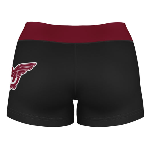 Texas Woman University Pioneers Logo on Thigh and Waistband Black & Maroon Womens Yoga Booty Workout Shorts by Vive La Fete