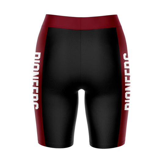 Texas Woman University Pioneers Logo on Waistband and Maroon Stripes Black Womens Bike Shorts by Vive La Fete