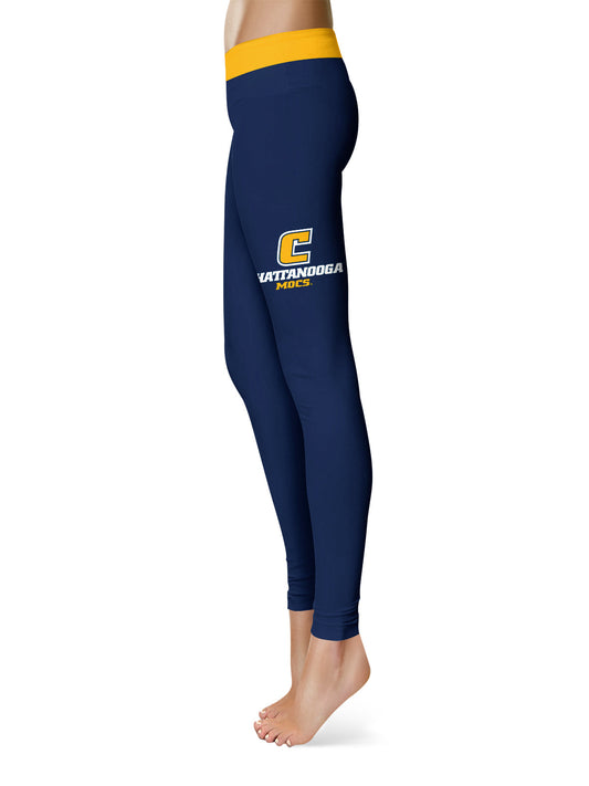 Tennessee Chattanooga MOCS Game Day Leg Color Block Navy Gold Yoga Leggings for Women by Vive La Fete