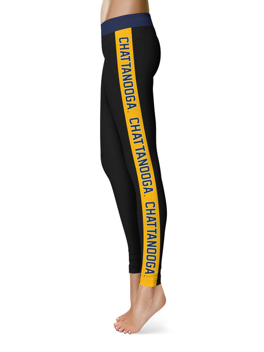 Tennessee Chattanooga Mocs Game Day Gold Stripes Black Yoga Leggings for Women by Vive La Fete