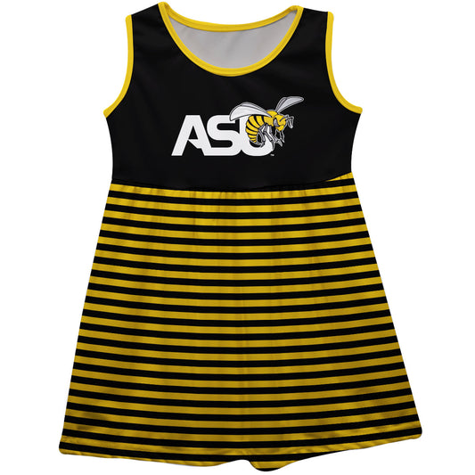 Alabama State Hornets Girls Game Day Sleeveless Tank Dress Solid Black Logo Stripes on Skirt by Vive La Fete