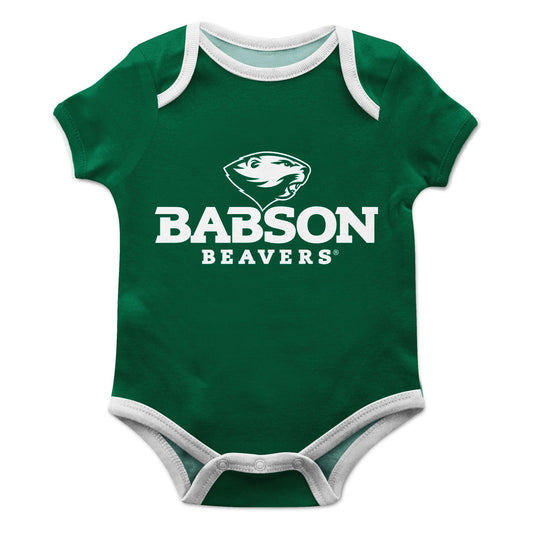 Babson College Beavers Infant Game Day Green Short Sleeve One Piece Jumpsuit Logo and Mascot Bodysuit by Vive La Fete