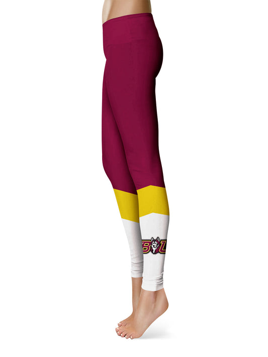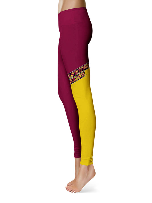 Bloomsburg University Huskies Game Day Leg Color Block Maroon Gold Yoga Leggings for Women by Vive La Fete