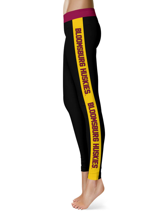 Bloomsburg University Huskies Game Day Gold Stripes Black Yoga Leggings for Women by Vive La Fete