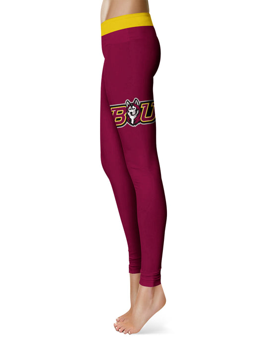 Bloomsburg University Huskies Game Day Logo on Thigh Maroon Yoga Leggings for Women by Vive La Fete