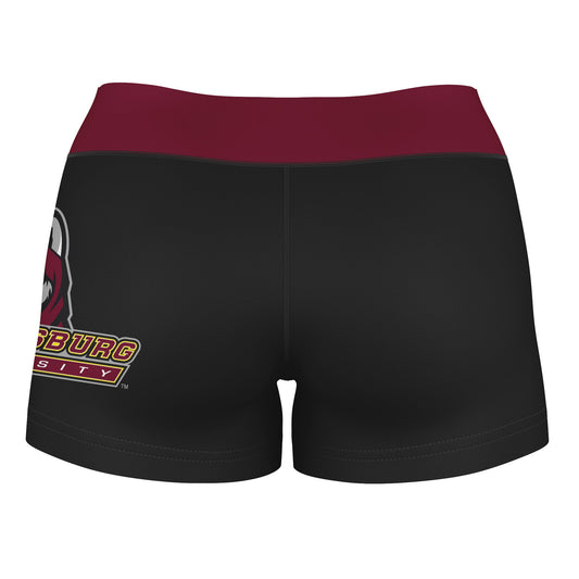 Bloomsburg Huskies Logo on Thigh and Waistband Black & Maroon Womens Yoga Booty Workout Shorts by Vive La Fete