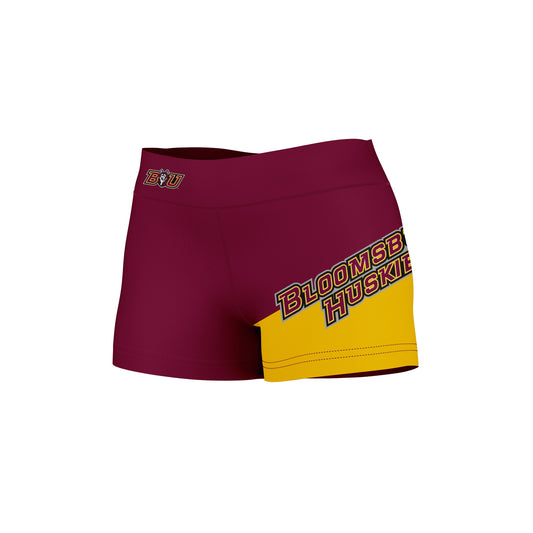 Bloomsburg University Huskies Game Day Collegiate Leg Color Block Maroon Gold Optimum Womens Yoga Shorts by Vive La Fete