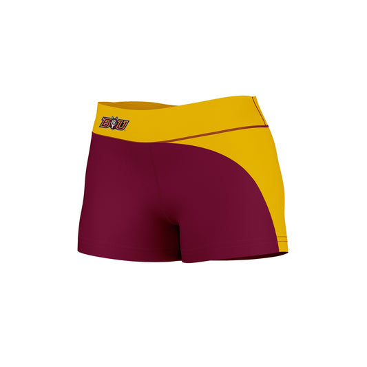 Bloomsburg University Huskies Game Day Collegiate Waist Color Block Maroon Gold Optimum Womens Yoga Shorts by Vive La Fete