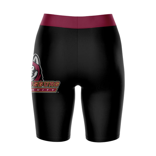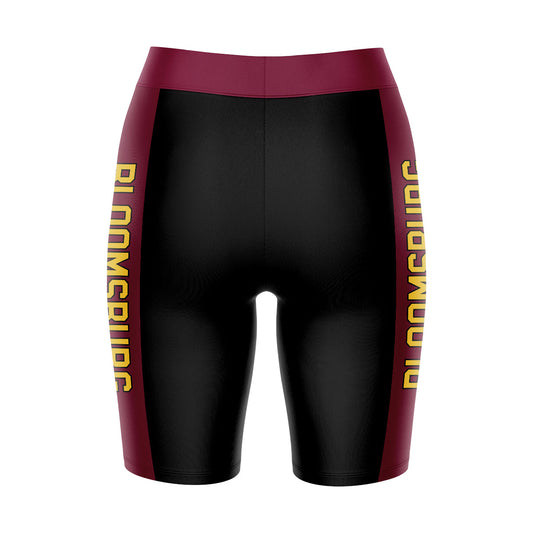 Bloomsburg University Huskies Game Day Logo on Waistband and Maroon Stripes Black Womens Bike Shorts by Vive La Fete