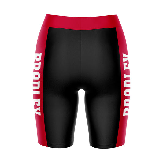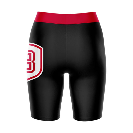 Bradley University Braves Game Day Logo on Waistband and Red Stripes Black Womens Bike Shorts by Vive La Fete