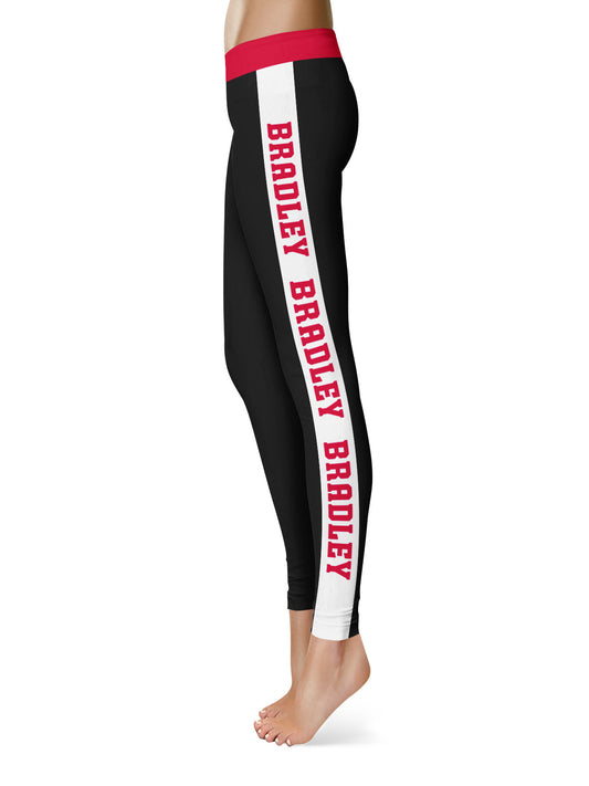 Bradley University Braves Game Day White Stripes Black Yoga Leggings for Women by Vive La Fete