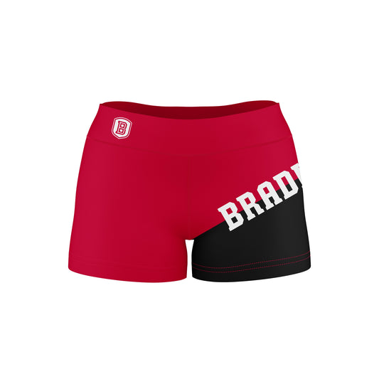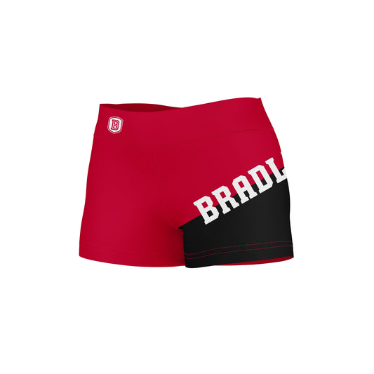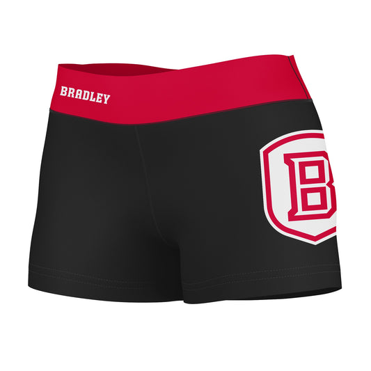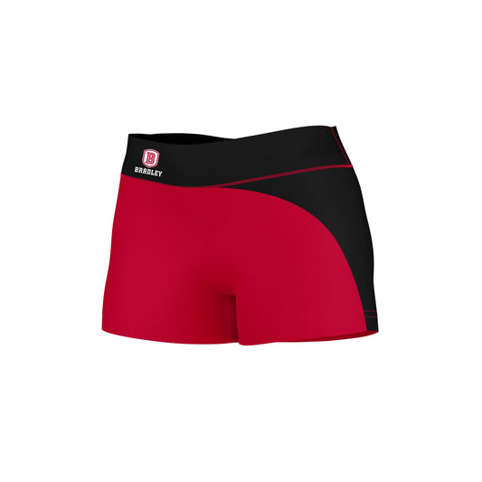 Bradley Braves Game Day Collegiate Waist Color Block Red Black Optimum Womens Yoga Shorts by Vive La Fete