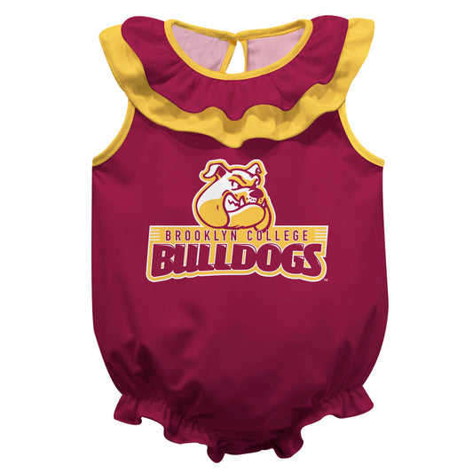 Brooklyn College Bulldogs Maroon Sleeveless Ruffle One Piece Jumpsuit Logo Bodysuit by Vive La Fete