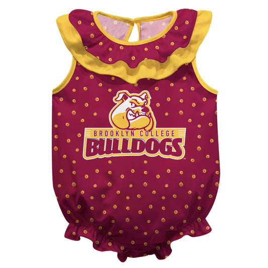 Brooklyn College Bulldogs Infant Game Day Maroon Short Sleeve One Piece Jumpsuit by Vive La Fete
