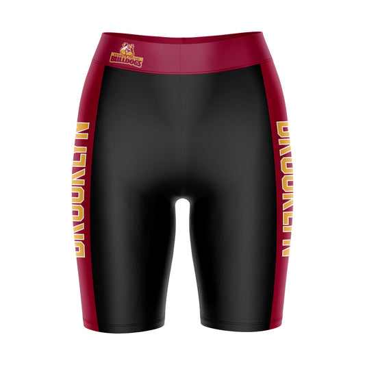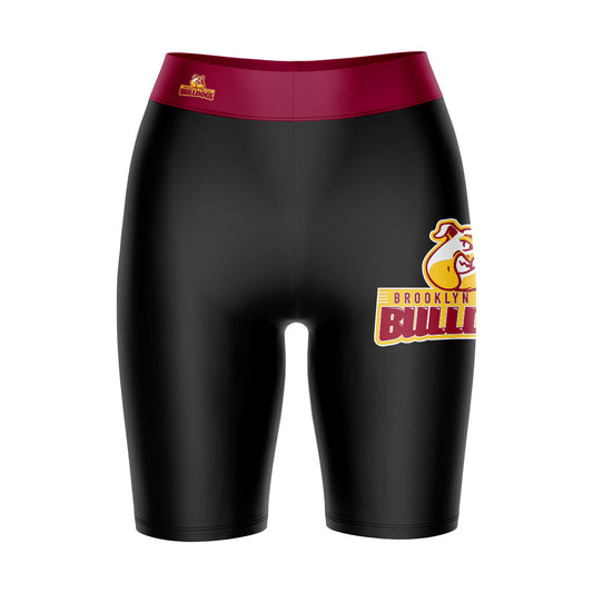 Brooklyn Bulldogs Game Day Logo on Thigh and Waistband Black and Maroon Womens Bike Shorts by Vive La Fete