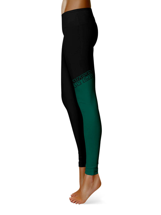 Bemidji State Beavers BSU Game Day Leg Color Block Black Green Yoga Leggings for Women by Vive La Fete