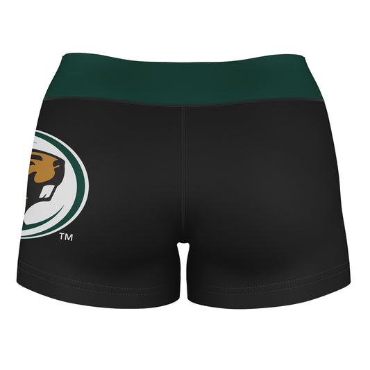 Bemidji State Beavers BSU Logo on Thigh and Waistband Black & Green Booty Workout Shorts by Vive La Fete
