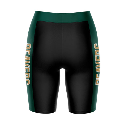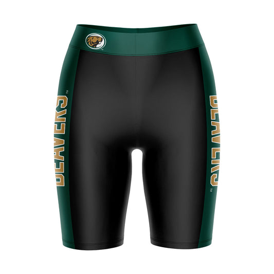 Bemidji State Beavers BSU Game Day Logo on Waistband and Green Stripes Black Womens Bike Shorts by Vive La Fete