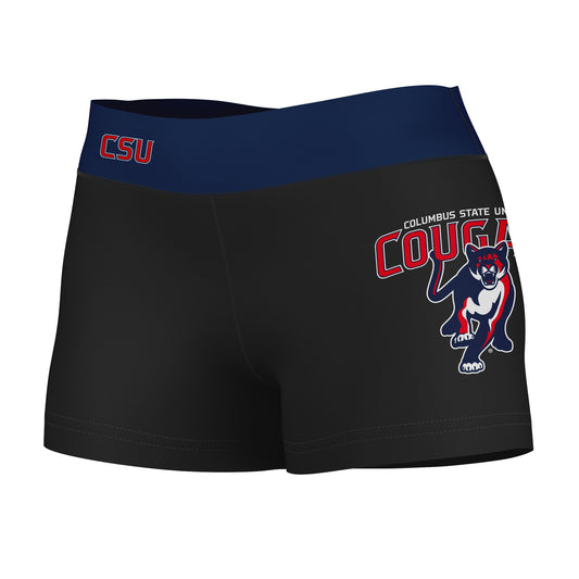 CSU Cougars Game Day Logo on Thigh and Waistband Black & Navy Womens Yoga Booty Workout Shorts by Vive La Fete