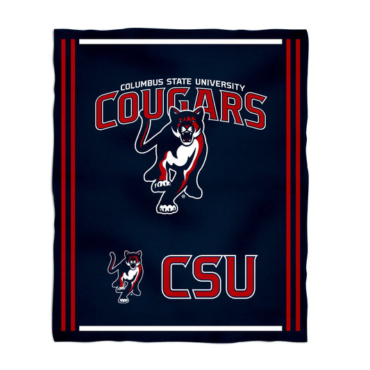 Columbus State Cougars Game Day Soft Premium Navy Throw Blanket 40 x 58 Logo and Stripes by Vive La Fete
