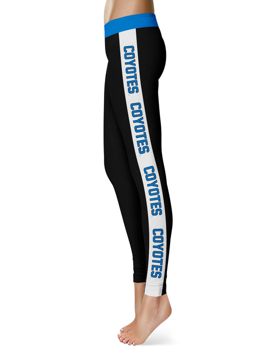 Cal State San Bernardino Coyotes Game Day White Stripes Black Yoga Leggings for Women by Vive La Fete