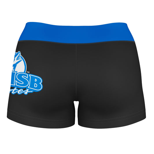 Cal State San Bernardino Coyotes CSUSB Logo on Thigh & Waistband Black Blue Womens Yoga Booty Workout Shorts by Vive La Fete
