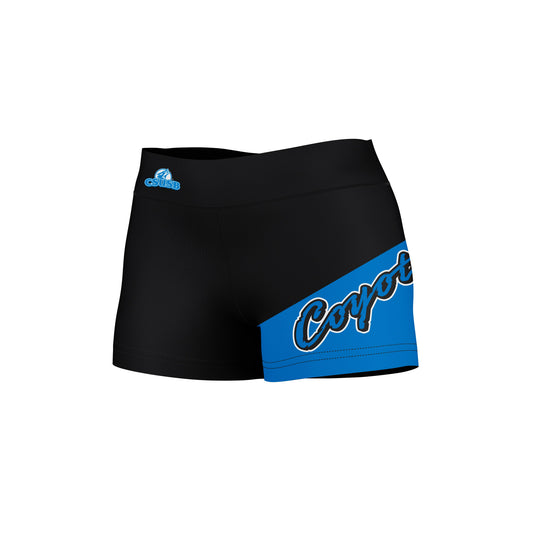 Cal State San Bernardino Coyotes Game Day Collegiate Leg Color Block Black Blue Optimum Womens Yoga Shorts by Vive La Fete