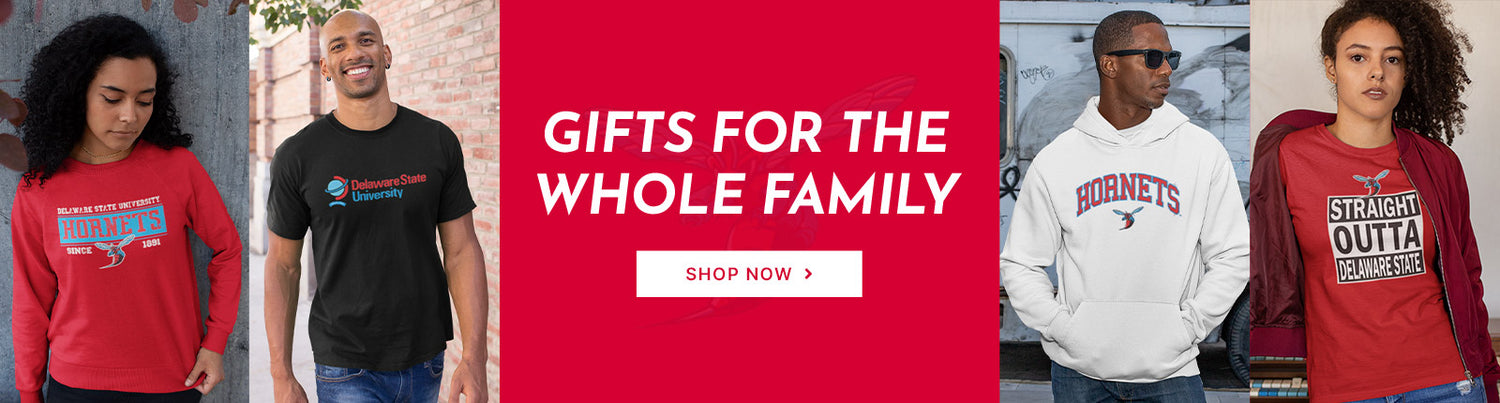 Select from our officially licensed collegiate merchandise, t-shirts, hoodies, crewnecks, and hats for Delaware State University. The perfect gift for your Dad, Mom, Sister, Brother, Son, Daughter, Husband, Wife, Boyfriend, Girlfriend, Grandpa, Grandma, and other loved ones.