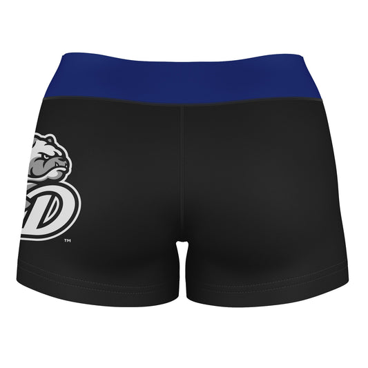 Drake Bulldogs Game Day Logo on Thigh and Waistband Black & Blue Womens Yoga Booty Workout Shorts by Vive La Fete