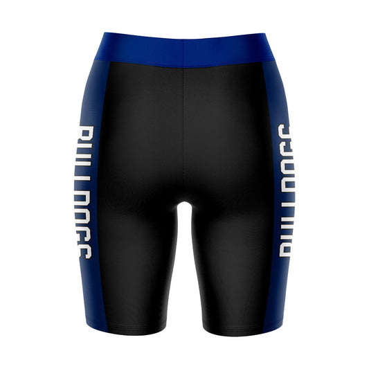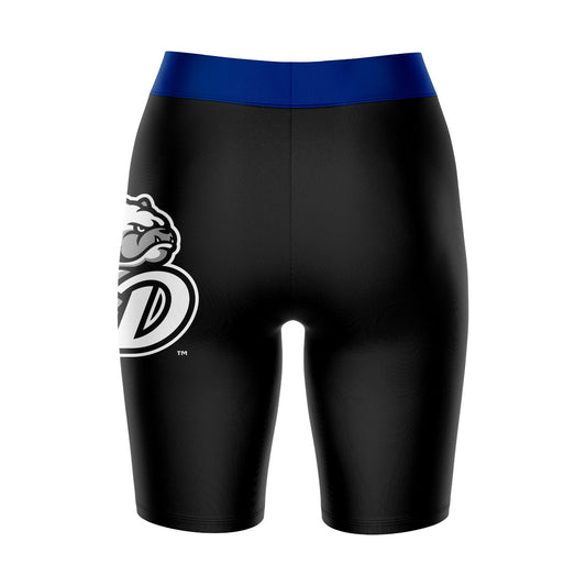 Drake Bulldogs Game Day Logo on Thigh and Waistband Black and Blue Womens Bike Shorts by Vive La Fete