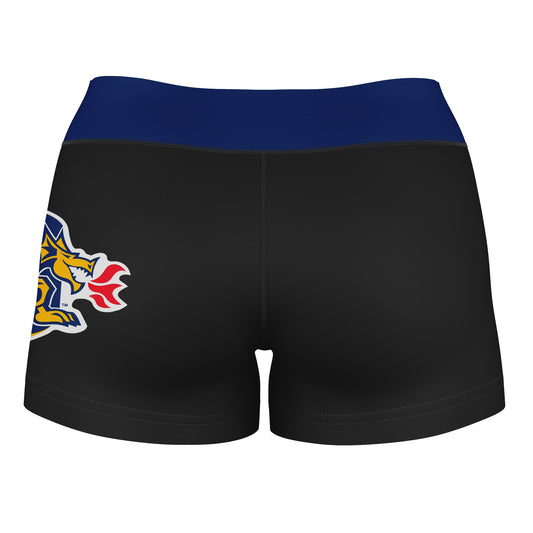 Drexel Dragon Game Day Logo on Thigh and Waistband Black & Blue Womens Yoga Booty Workout Shorts by Vive La Fete