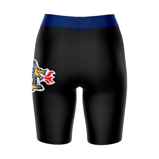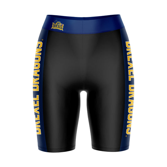 Drexel Dragon Game Day Logo on Thigh and Waistband Black and Blue Womens Bike Shorts by Vive La Fete