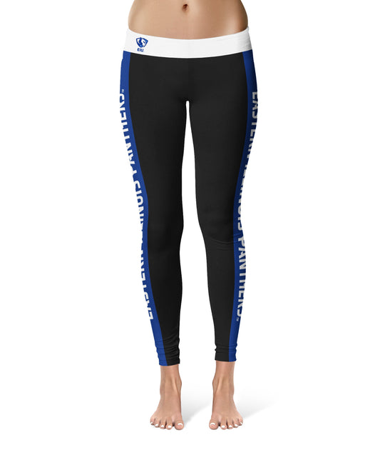 Eastern Illinois Panthers EIU Game Day Blue Stripes Black Yoga Leggings for Women by Vive La Fete