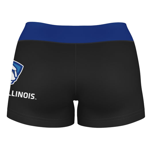 Eastern Illinois Panthers EIU Logo on Thigh & Waistband Black & Blue Womens Yoga Booty Workout Shorts by Vive La Fete