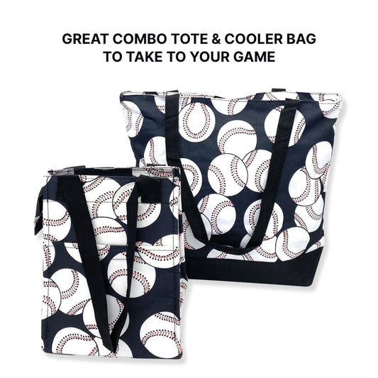 Empire Cove 2 Piece Gift Set Baseball Large Tote Bag Insulated Lunch Bag Cooler