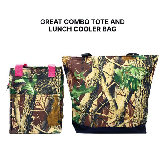 Empire Cove 2 Piece Gift Set Camouflage Large Tote Bag Insulated Lunch Bag Cooler