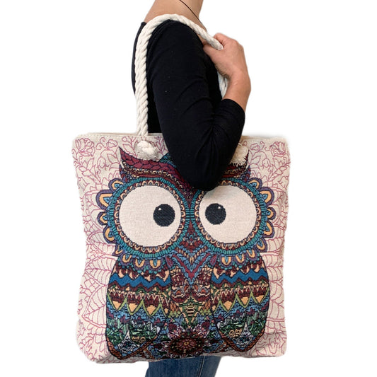 Empire Cove Owl Print Cotton Canvas Tote Bags Reusable Beach Shopping