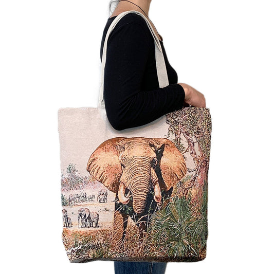 Empire Cove Elephant Print Cotton Canvas Tote Bags Reusable Beach Shopping