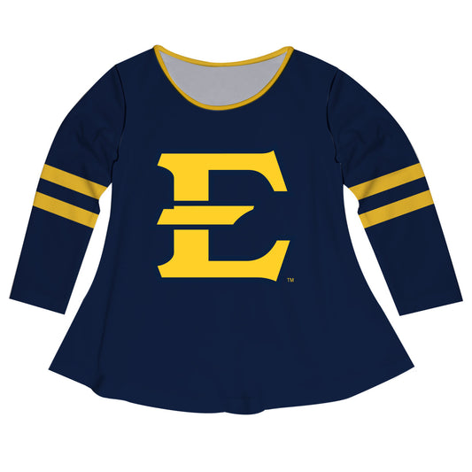 East Tennessee State Big Logo Blue Stripes Long Sleeve Girls Laurie Top by Vive La Fete