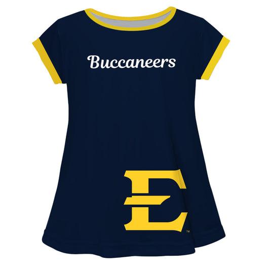 East Tennessee State Buccaneers Blue Solid Short Sleeve Girls Laurie Top by Vive La Fete