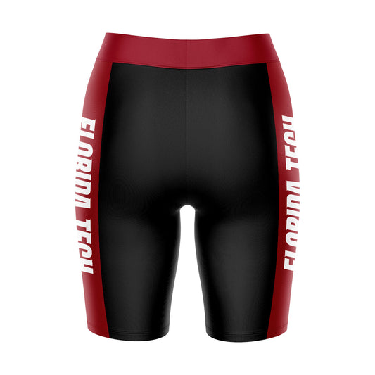 Florida Tech Panthers Game Day Logo on Thigh and Waistband Black and Red Womens Bike Shorts by Vive La Fete