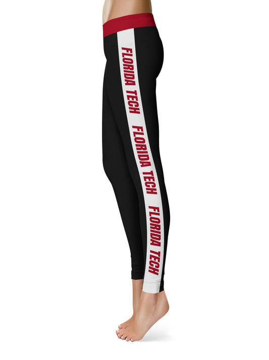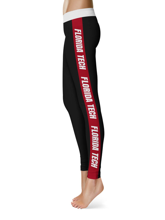Florida Tech Panthers Game Day Red Stripes Black Yoga Leggings for Women by Vive La Fete
