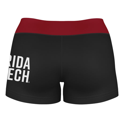 Florida Tech Panthers Collegiate Waist Color Block Red Black Optimum Womens Yoga Shorts by Vive La Fete