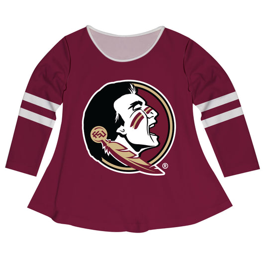 Florida State Seminoles Big Logo Garnet Stripes Long Sleeve Girls Laurie Top by Vive La Fete