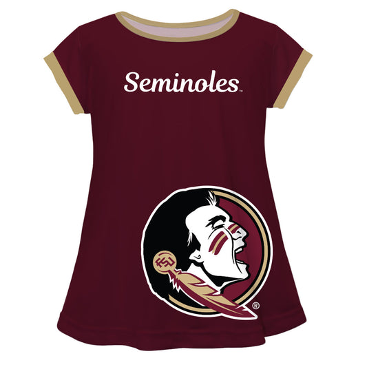 Florida State Seminoles Big Logo Garnet Short Sleeve Girls Laurie Top by Vive La Fete
