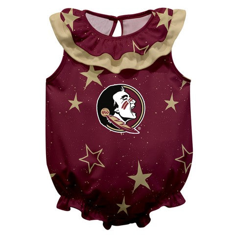 FSU Seminoles Swirls Maroon Sleeveless Ruffle One Piece Jumpsuit Logo Bodysuit by Vive La Fete